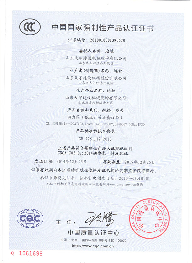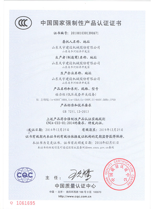 強(qiáng)制性產(chǎn)品認(rèn)證證書(shū)-3c動(dòng)力柜