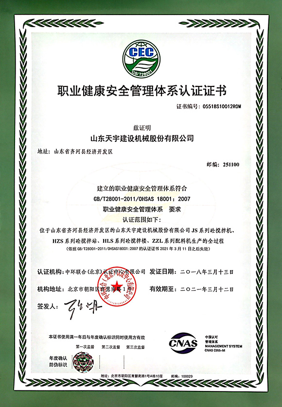 職業(yè)健康安全管理體系認(rèn)證證書(shū)