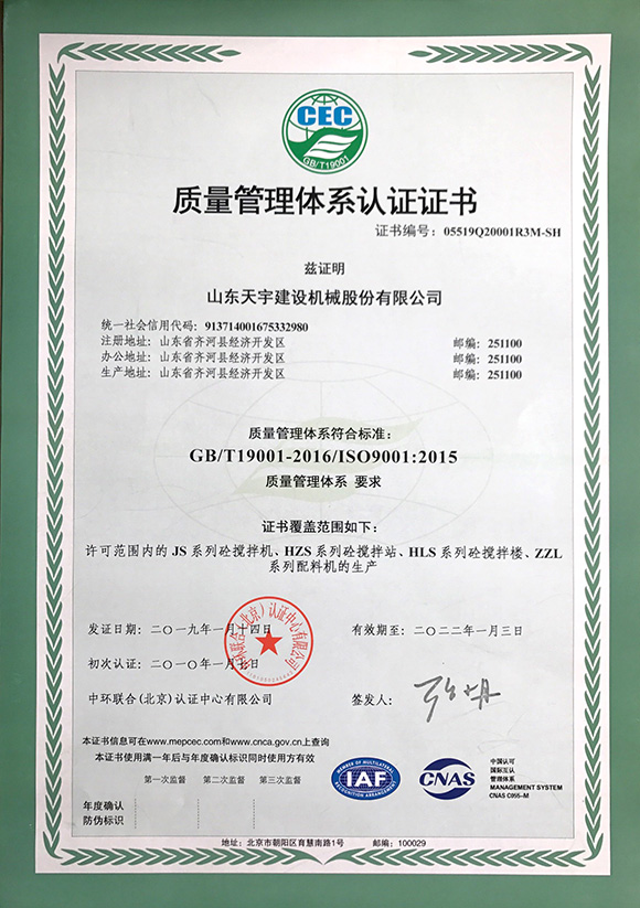 質(zhì)量管理體系認(rèn)證證書(shū)