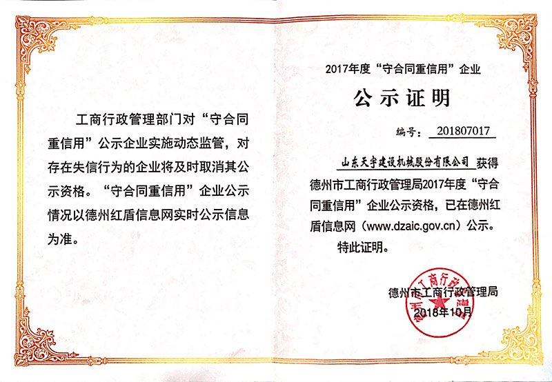 2017年度守合同重信用企業(yè)
