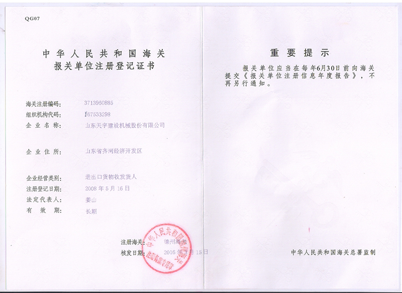 山東天宇建設(shè)機(jī)械股份有限公司