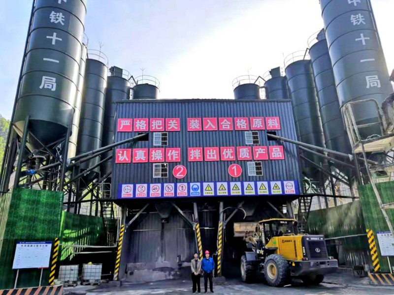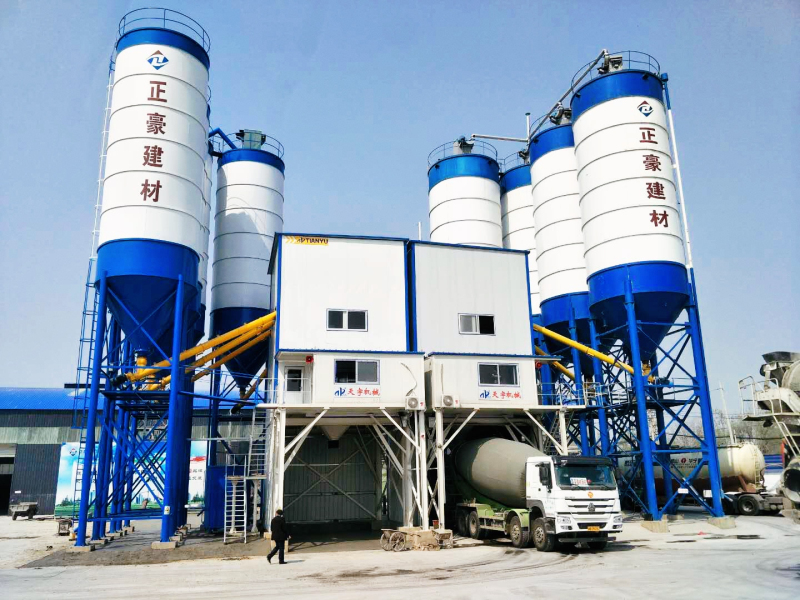 粉倉頂置式全封閉環保型HLS240混凝土攪拌站